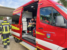 Am ersten Tag waren wir mit unserem Mehrzweckfahrzeug 11/1 als Führungsunterstützung tätig. Dort unterstützten wir die Planung und Organisation des Einsatzes. Hierfür ist unser Fahrzeug mit mobilem Internet, Drucker, Whiteboards und Hilfsmaterialen ausgestattet.