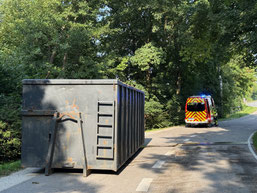 Am 14.08.2025 wurden wir zusammen mit der Feuerwehr Vohburg zu einem Containerbrand alarmiert. Wir kontrollierten den mit Grünschnitt gefüllten Container mit Dunghacke und Wärmebildkamera. Es konnten keine Anzeichen für einen Brand festgestellt werden - lediglich das natürliche Dampfen von Grünschnitt.