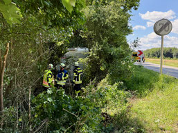 Am 29.06.2025 Nachmittag wurden wir zu einem Verkehrsunfall alarmiert. Gemeldet war ein Wohnmobil, das von der Straße abgekommen ist. Der Fahrer konnte sich selbstständig vom Fahrzeug befreien.